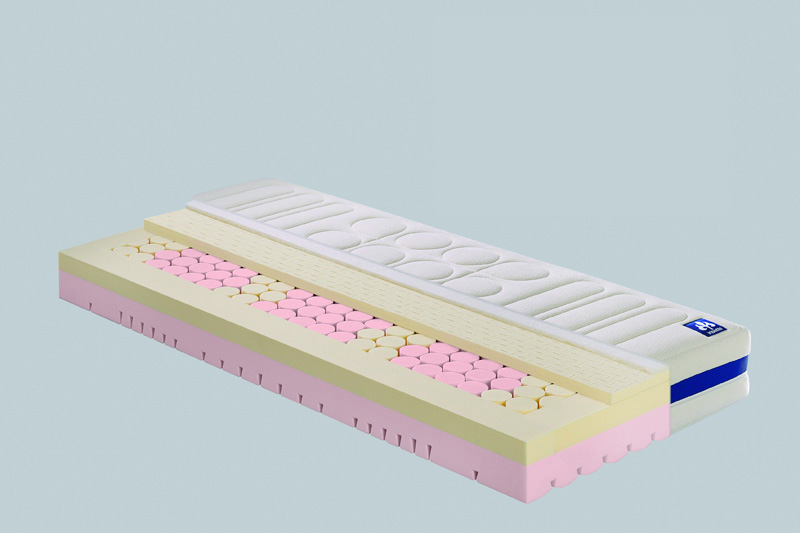 Füllung: 18 cm hoher, extrem punktelastischer Kaltschaumkern mit frei beweglichen Flextubes in unterschiedlichen Härtegraden, RG 55, 7 Zonen-Anordnung mit Rhombo-therm® Komfortauflage