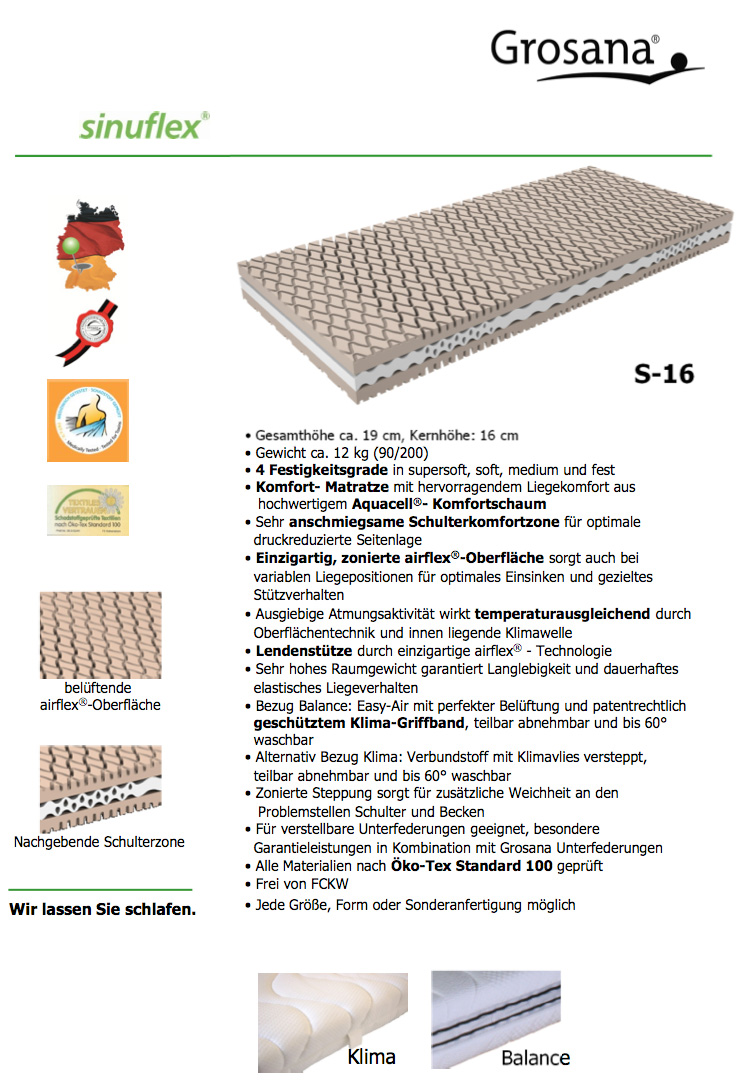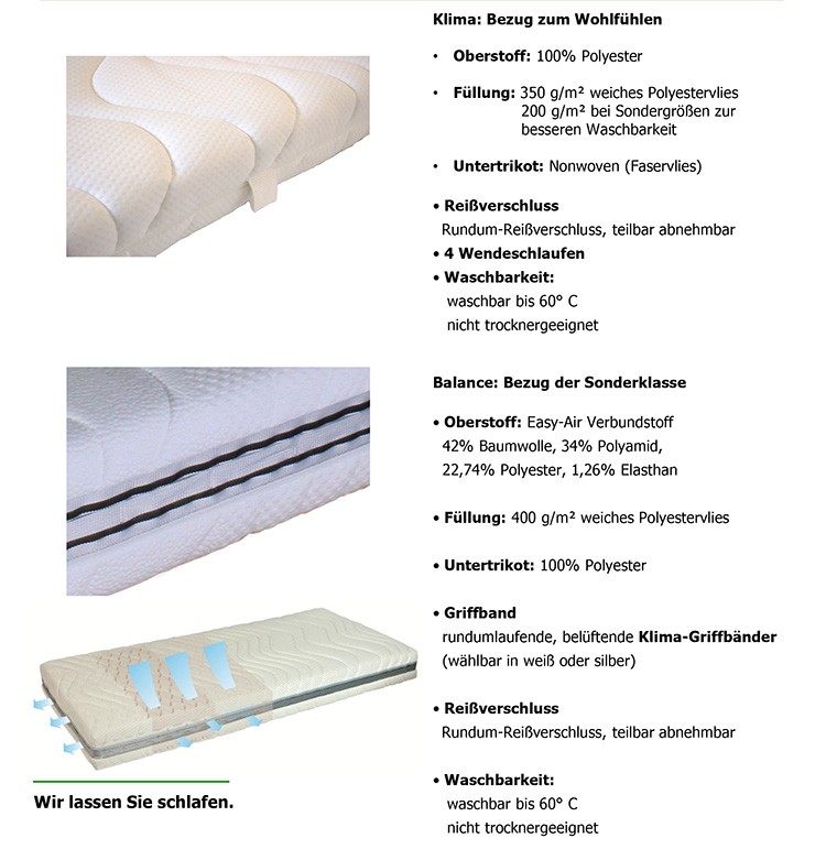 Standardmaße: €: 449.- | 140/200: € 679.- (Preise gelten für den Bezug "Klima").